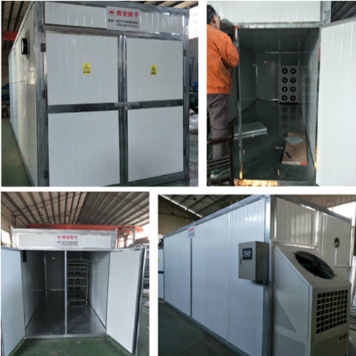 熱泵烘干機(jī)的主機(jī)熱泵裝入,在裝好的烘干房尾部裝入主機(jī),主機(jī)的顯示屏的一面與烘干房外壁齊平,冷凝器的一面與風(fēng)機(jī)架齊平。