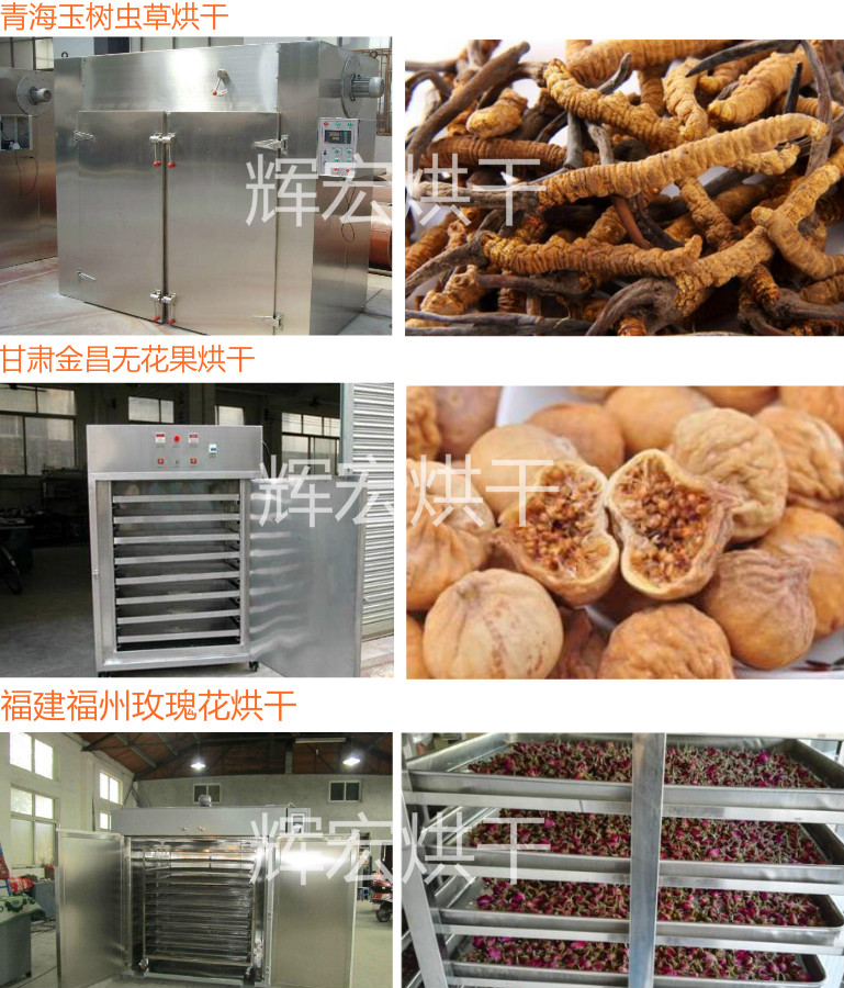 烘干適用物料:人參、黨參、黃芪、白術(shù)、甘草、枸杞子、天麻、人參、靈芝、當(dāng)歸、何首烏、龍眼、山茱萸、冬蟲夏草、山藥、金銀花、地黃、菊花、羅漢果、白芍、菊花、茯苓、黃連、當(dāng)歸、貝母、元胡、番紅花、黃芩、桔梗、紅花、芍藥、牡丹、山茱萸、薏苡、銀杏、五倍子、豬苓、黃芪、金蕎麥、肉蓯蓉等。