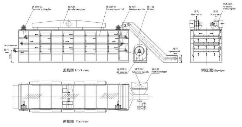網(wǎng)帶型、網(wǎng)鏈型、網(wǎng)板型;單級型、兩級型、多級型;單層、雙層、多層型;順流型、逆流型、混流型;設備配置靈活,可使用網(wǎng)帶沖洗系統(tǒng)及物料冷卻系統(tǒng)。大部分空氣循環(huán)利用,高度節(jié)省能源。 熱源可選配用蒸氣、導熱油、電或燃煤(油)熱風爐配套,可以調節(jié)空氣量、加熱溫度、物料停留時間及加料速度以取得最佳干燥效果。
