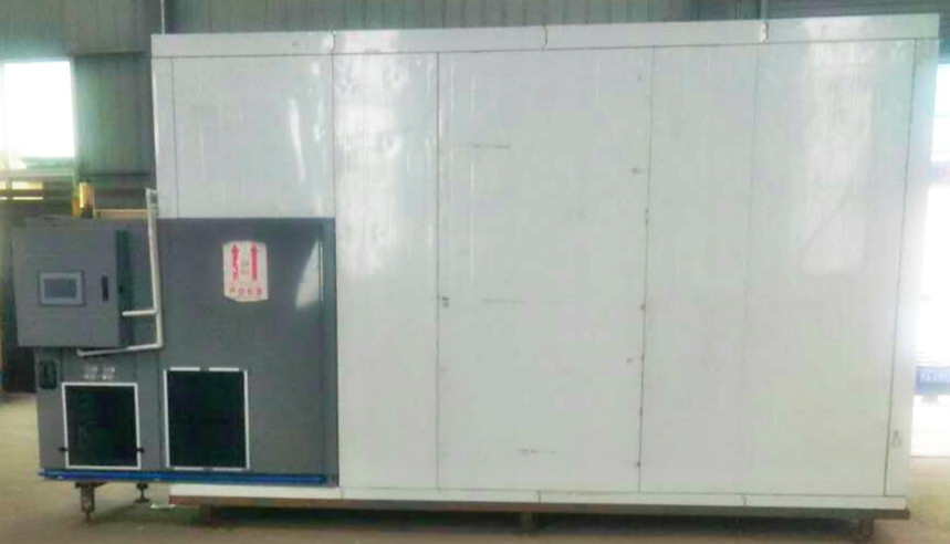 該干燥設(shè)備采用的是連續(xù)性烘干作業(yè),主要有干燥室、烘干車、料盤、供風(fēng)系統(tǒng)、空氣能熱泵、自動(dòng)電控系統(tǒng)等構(gòu)成。干燥室采用金屬保溫板或磚混結(jié)構(gòu),烘干盤采用金屬或其他材料制作。
